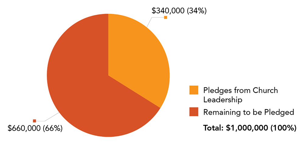 The goal approved by the Board is one million dollars. $750,000 will be spent on the building and $250,000 will be used for a primarily local missions and ministry investment. Our church has been supported, in part, from a missional component of a previous capital campaign and we want to follow in their footsteps.